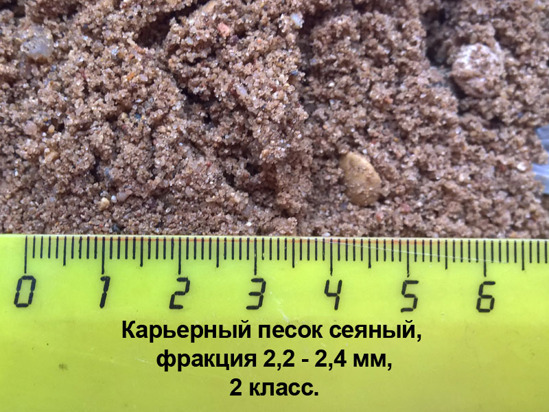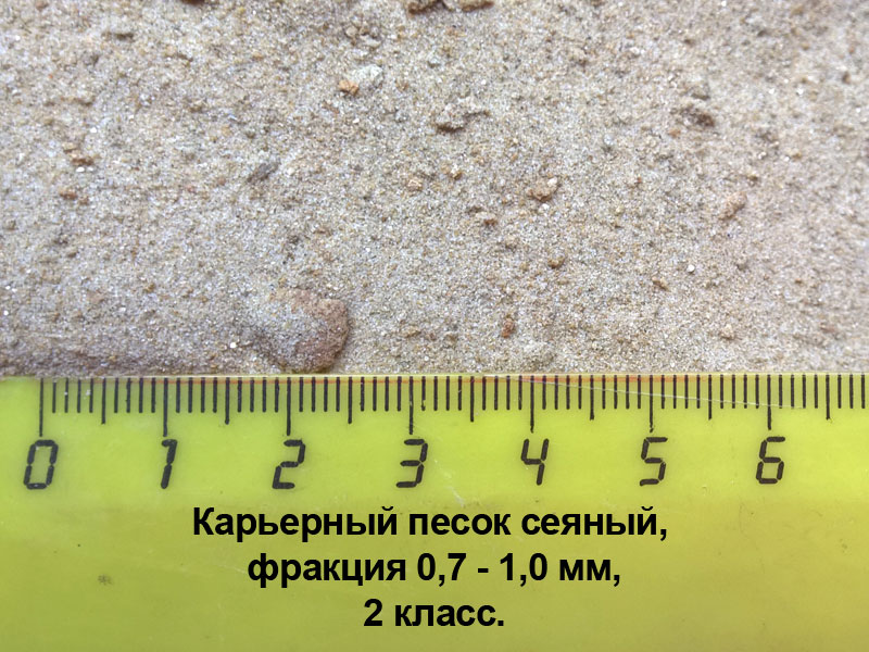 Сеяный песок отличается от остальных аналогов способом добычи. Карьерный или морской песок отмывается, а затем просеивается. Масса очищается механическим путем с помощью промушленного сита с ячейками соответствующего размера, в процессе происходит отсеивание всех ненужных пылевидных и глиняных частиц. Для лучшего результата продукция промывается в специальных мойках.