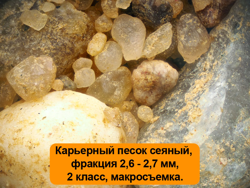 Для получения сеяного песка, горную породу пропускают через ячейки различного диаметра. Процедура позволяет разделить на различные виды по зернистости: